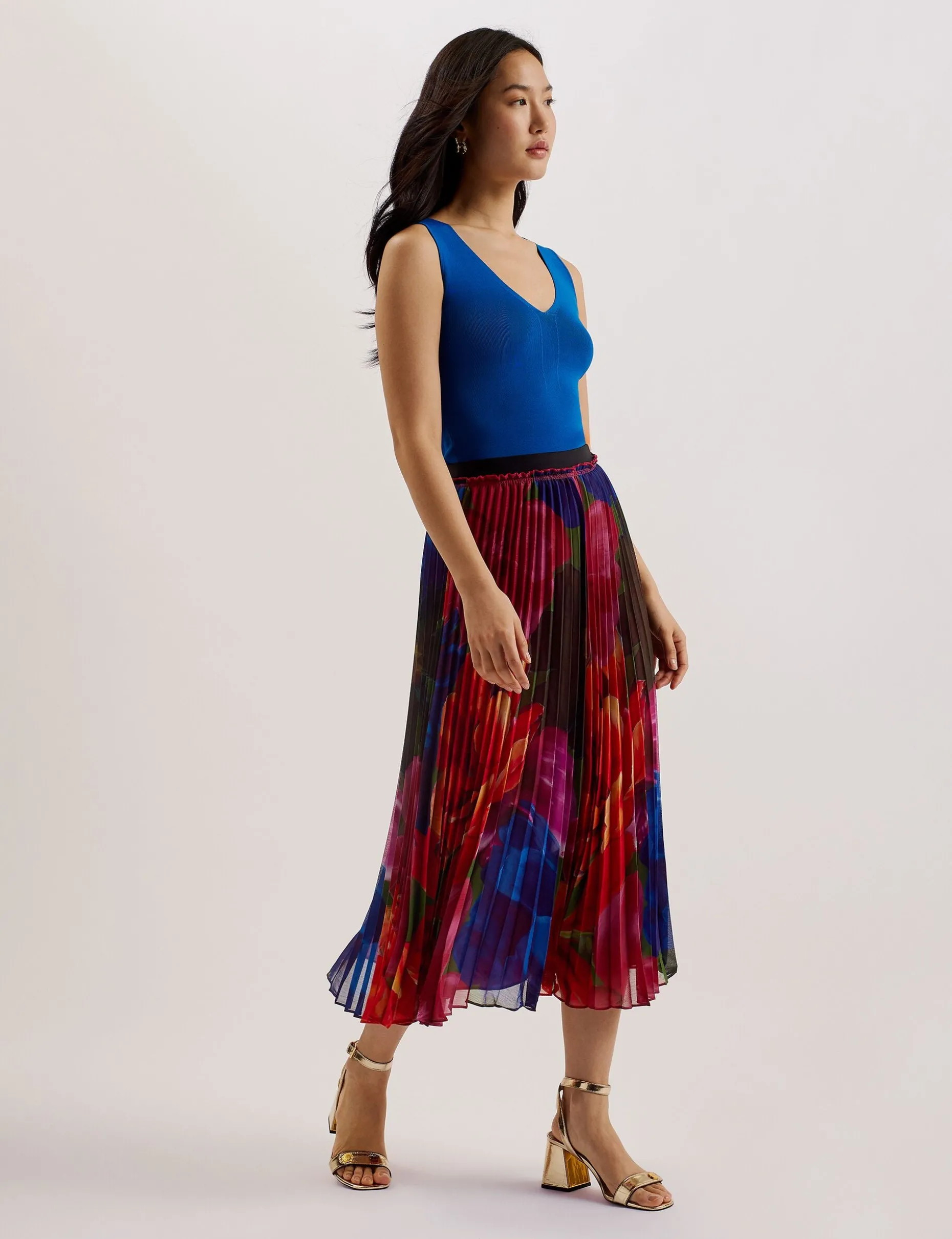 Evola Printed Pleated Midi Skirt